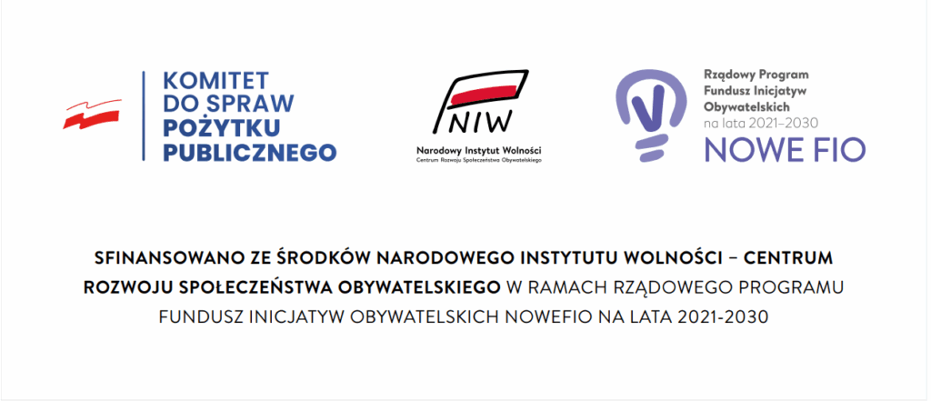 Sfinansowano ze środków Narodowego Instytutu Wolności – Centrum Rozwoju Społeczeństwa Obywatelskiego w ramach Rządowego Programu Fundusz Inicjatyw Obywatelskich NOWEFIO na lata 2021-2030.